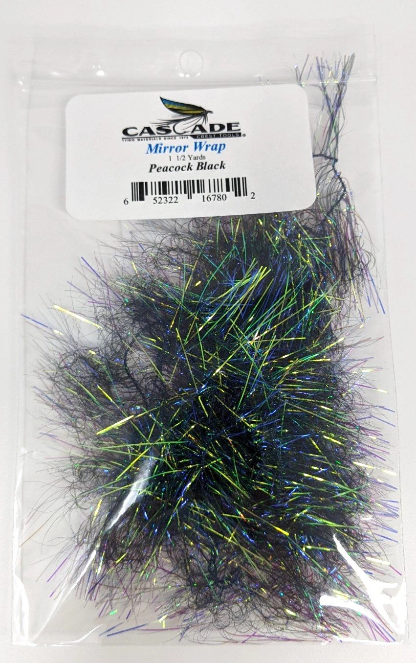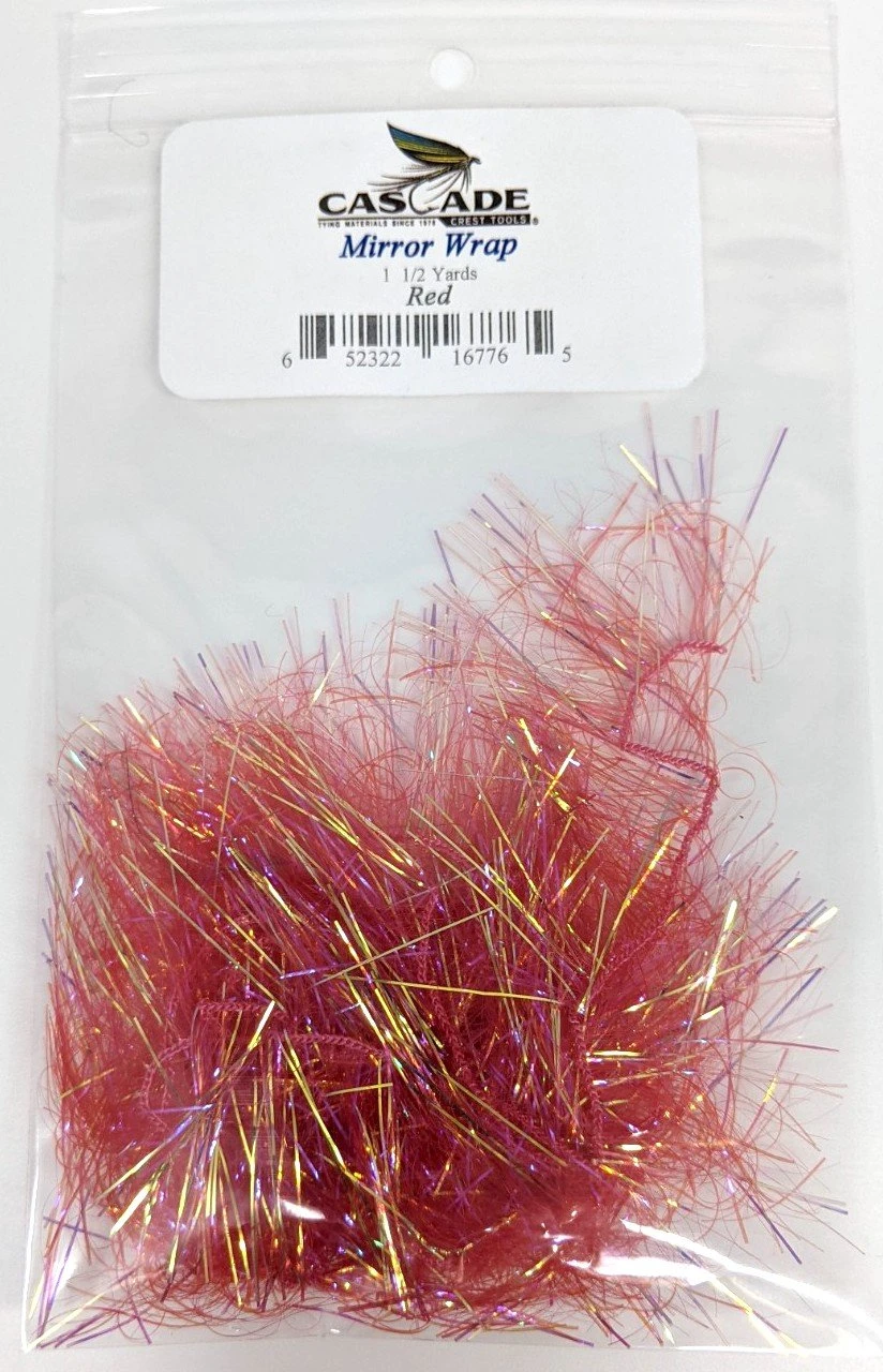 Cascade Crest Mirror Wrap Mirror Wrap : A little longer than Hackle Flash but made with 90% MIRROR FLASH and 10% Tri Lobal Hair. This stuff is BRIGHT! . All you need is a few wraps to highlight any fly.