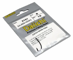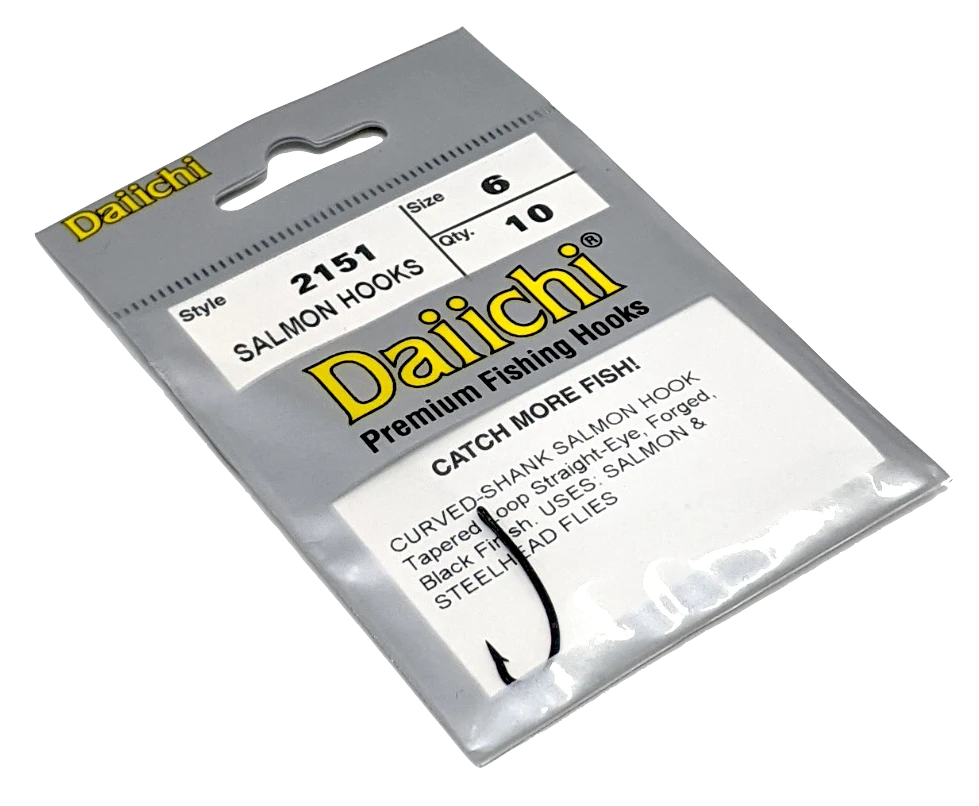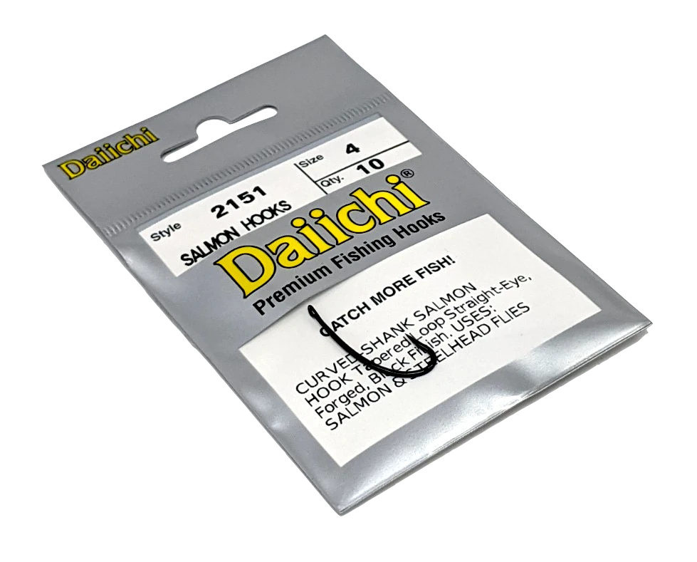 Curved Shank Salmon Hook. Tapered Loop, Straight Eye, Forged, Black Finish.