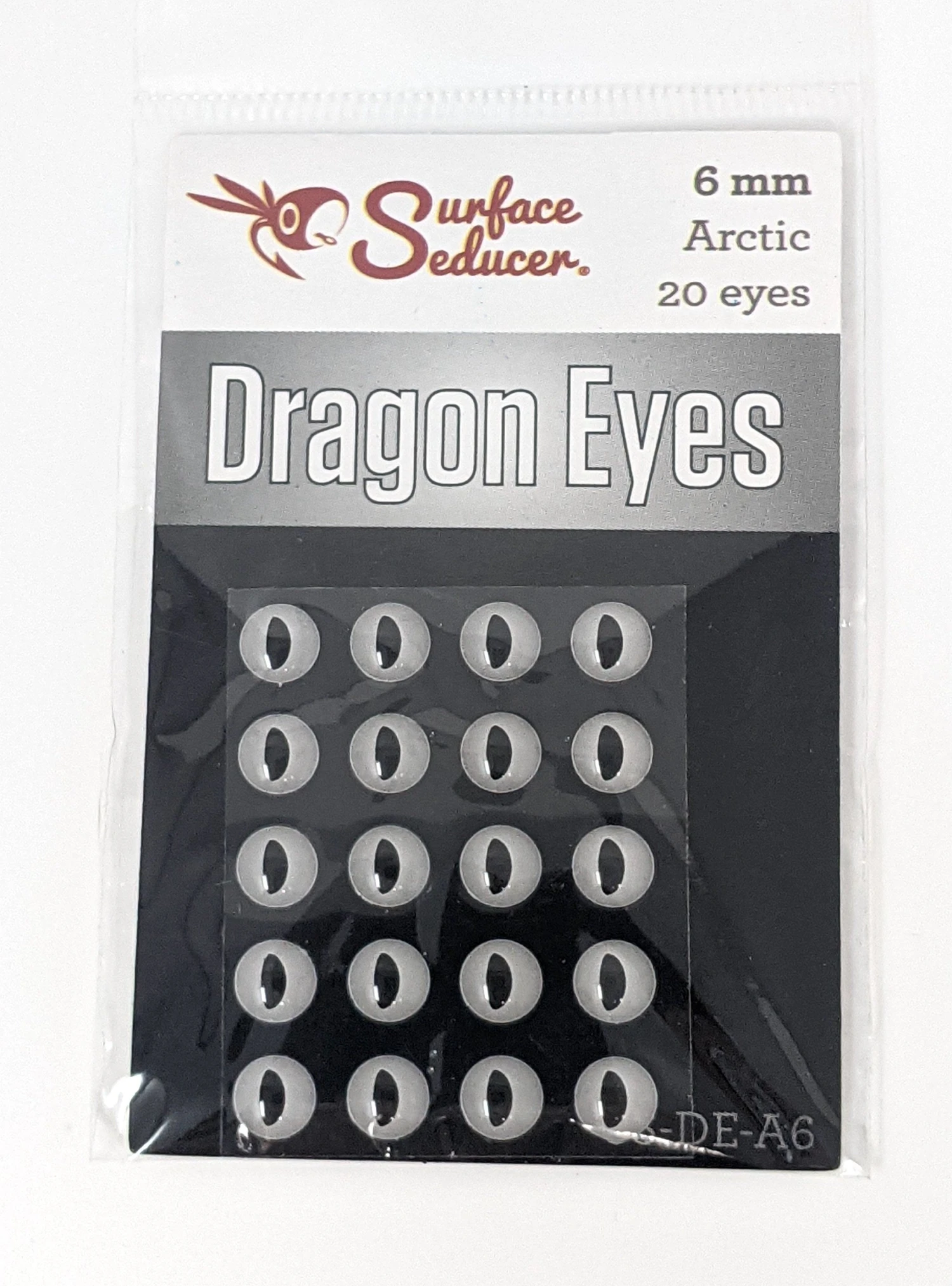 Dragon Eyes are the perfect eyes to match up with your Double Barrel Popper heads. In the Game of Throws, the eyes have it when it comes to casting the ultimate bug! Whatever realm you find yourself in, make your patterns stare down the fishy beasts with authority! Available in 4 sizes and 4 colors to choose from! Huzzah!