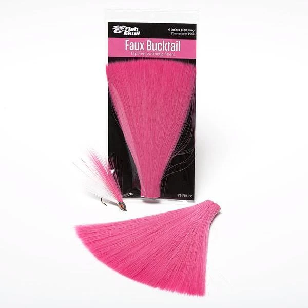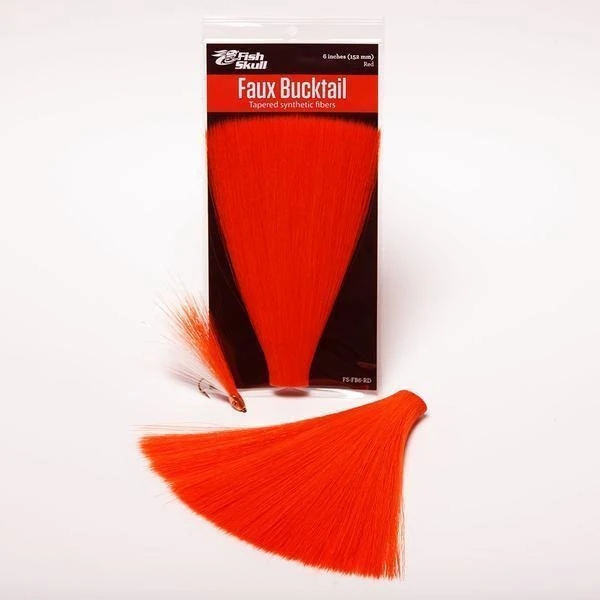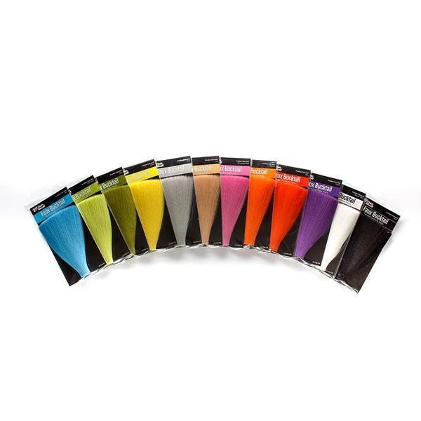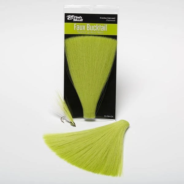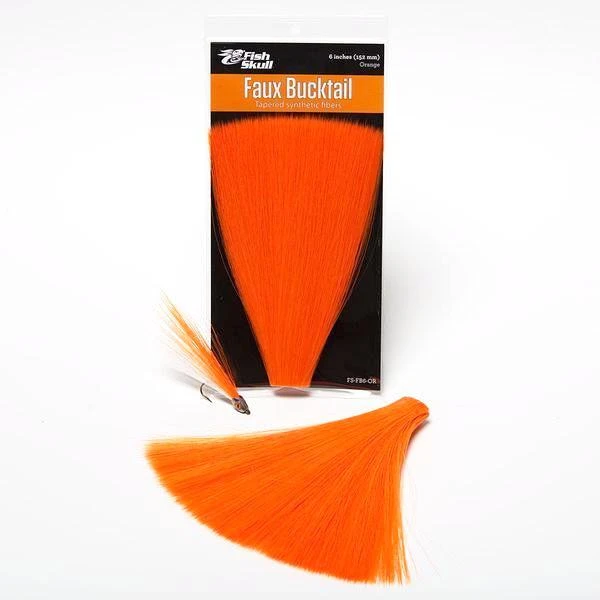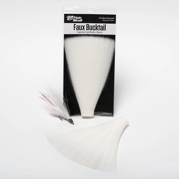 Fish Skull Faux Bucktail by Flymen Products. The synthetic tapered hair is made to mimic the qualities, length, and taper of bucktail. Great for pike and musky flies. Also can replace bucktail on Clouser Minnow style flies. Use in place of bucktail on any of your favorite flies.