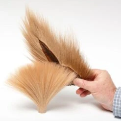 Because the fibers are all aligned and the same length, you get more usable hair than a bucktail. The hair being even and collected in one large bunch makes tying flies faster, saving time sorting through a bucktail looking for the right length of hair.