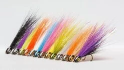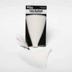 Unlike a natural bucktail hair, the Fish-Skull Faux Bucktail is not hollow. So it tends to create flies with less buoyancy than those tied with natural bucktail. Faux Bucktail is not hollow like the natural hair. This changes the buoyancy but also changes how the hair ties. It won’t flare like natural bucktail, but you can alter you techniques to achieve similar looks on your flies. Reverse tying techniques allow Faux Bucktail to “flare” and not lay flat on the hook. However, for flies like Clouser Minnows the flat tying properties work very well. Fiber length on the Fish-Skull Faux Bucktail is 6″.