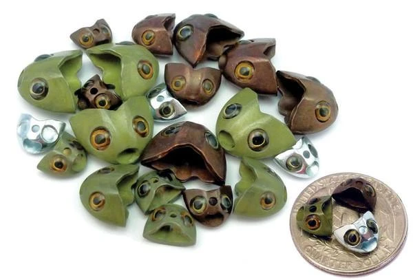 “The smaller head is much lighter and about the same width as standard size bead-chain eyes. This makes for much easier casting and allows the fly to enter the water with less disturbance than heavier versions or dumbbells. In addition, the Mini Sculpin Helmet has an innovative new weed guard feature and is designed to fit a much larger range of hook sizes.”