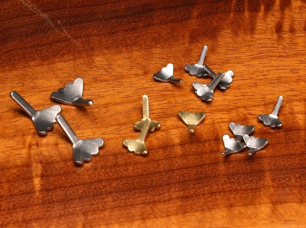 Molded stainless steel shrimp and crayfish tails. Available in 3 sizes and two colors. Put these on your favorite saltwater shrimp pattern to enhance its movement. Great for crayfish patterns for trout and smallmouth bass. Small and Medium sizes have 20 tails per pack, large size has 15 per pack.