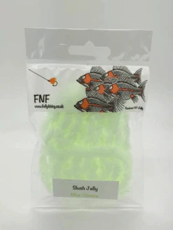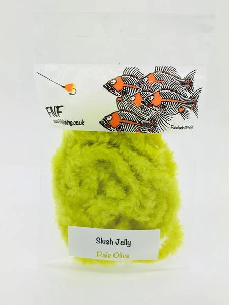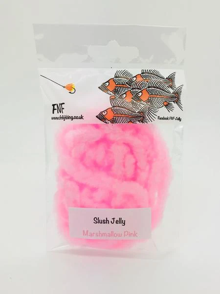 FNF Slush Jelly – FNF have spent a lot of time perfecting an easy to use 15mm fritz/chenille that gives a slush like appearance in the water. A mixture of jelly fibres and a candy floss like compound gives this material its slushy appearance when wet. Slush Jelly is a 15mm fritz/chenille mounted on a micro core.