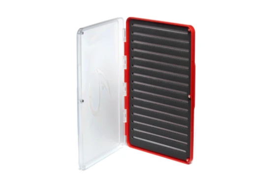 Our latest addition to the expanding range of Premium Quality, High Capacity, UK Made boxes is the Guide Box. Available in Red, Blue & Grey this highly durable, polypropylene box can accommodate up to 672 finely positioned flies tucked into the 4mm thick High Density slotted foam bed. This is the ideal competition box for slotting into a boat bag, in various colours for ease of identification. Having spent more than two years in development, we’re extremely proud to present this box to the market and much look forward to seeing it in service for many years to come. Size CM: 280 (W) x 186 (D) x 24 (H). Weight GRAMS: 380.