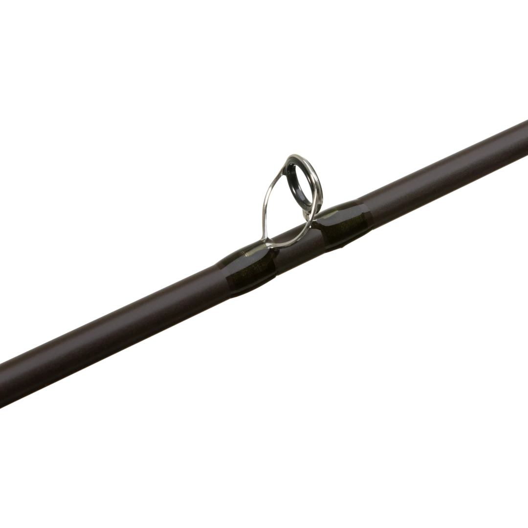 G Loomis IMX Pro Euro – With a moderate flex pattern and generous power through the bottom half of the blank, IMX-PROe is designed to load easily for improved casting accuracy without sacrificing the “oomph” behind the hookset. A custom half wells “Euro Grip,” matte-finished reel seat with counter-weighted fighting butt, precise guide spacing to eliminate line sag, and pointer finger “sensitivity zone” on the blank above the grip round out the feature set for this purpose-driven euro nymphing powerhouse.