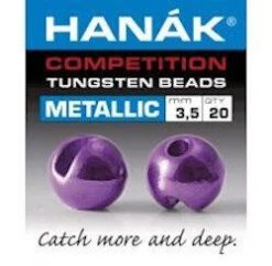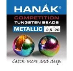 Hanak Metallic+ Slotted Tungsten Beads- Slotted tungsten beads in fish attracting metallic finishes. Match with Hanak Jig hooks- 400 bl, 450 bl, 470b, and 480 bl. Use sizes-