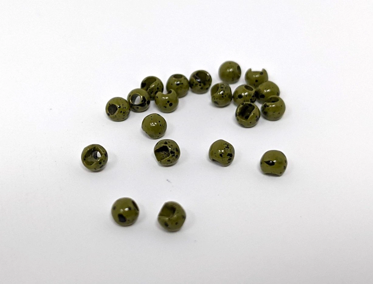 Hareline Mottled Slotted Tungsten Beads – The Very popular mottled olive and mottled brown tungsten beads from Hareline are now available in a slotted bead.