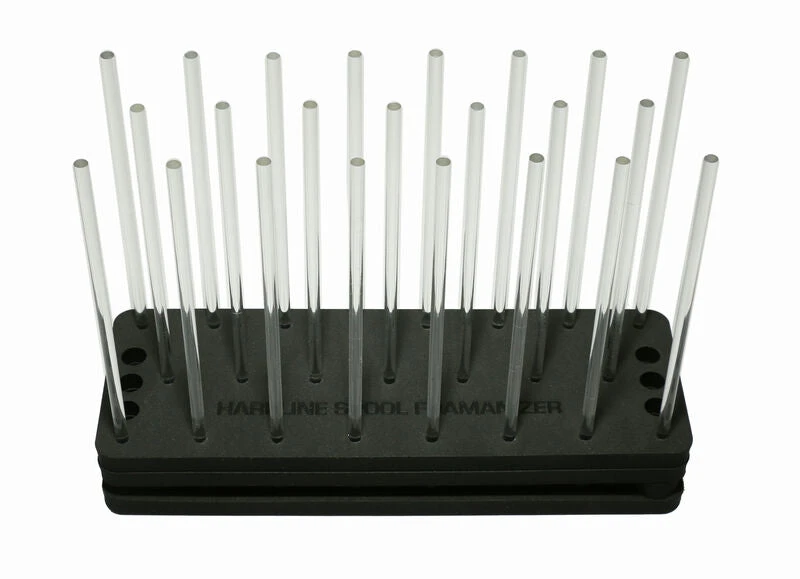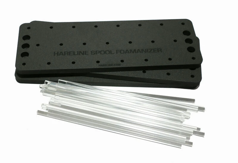 Includes 3 foamanizer sections and 23 long acrylic rods. To assemble, layer the three sections and insert the rods. Holds 138 standard thread spools.Â