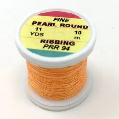 Hends Pearl Round Ribbing Tinsel – Small diameter pearl round tinsel for ribbing nymphs and small flies. Adds sheen and ribbing in one. Awesome for small mayfly nymph and midge patterns.
