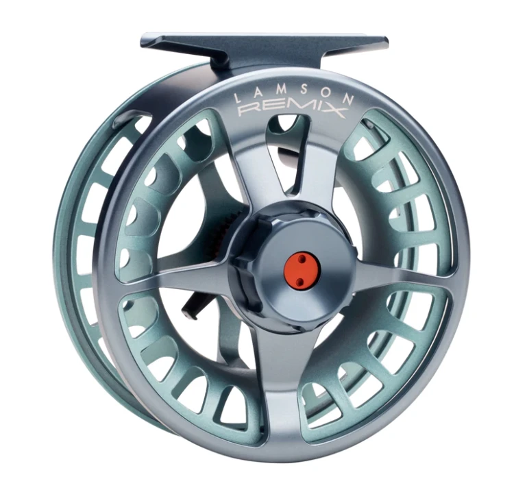 Lamson Remix Fly Reel + The ultimate hybrid. A fusion between the free-form structures of a cast spool and the mechanical integrity of a CNC-machined case, Remix is the ultimate hybrid. Machined in Idaho from bar-stock aluminum, the case delivers maximum structural rigidity and durability all wrapped in a harder, brighter finish. The spool (compatible with Liquid), is pressure-cast with radiused compound curves, near zero-radius inside corners, and a precise fit and finish. It has a U-shape arbor and narrow format to aid in line control. Remix brings together the best of CNC-machining and pressure-cast technologies to deliver an unprecedented level of quality for about $200. In addition to the US-made case, all critical drag components are expertly CNC-machined here in the US, too. The result of this Remix? High performance. Reliability. Quality assurance.