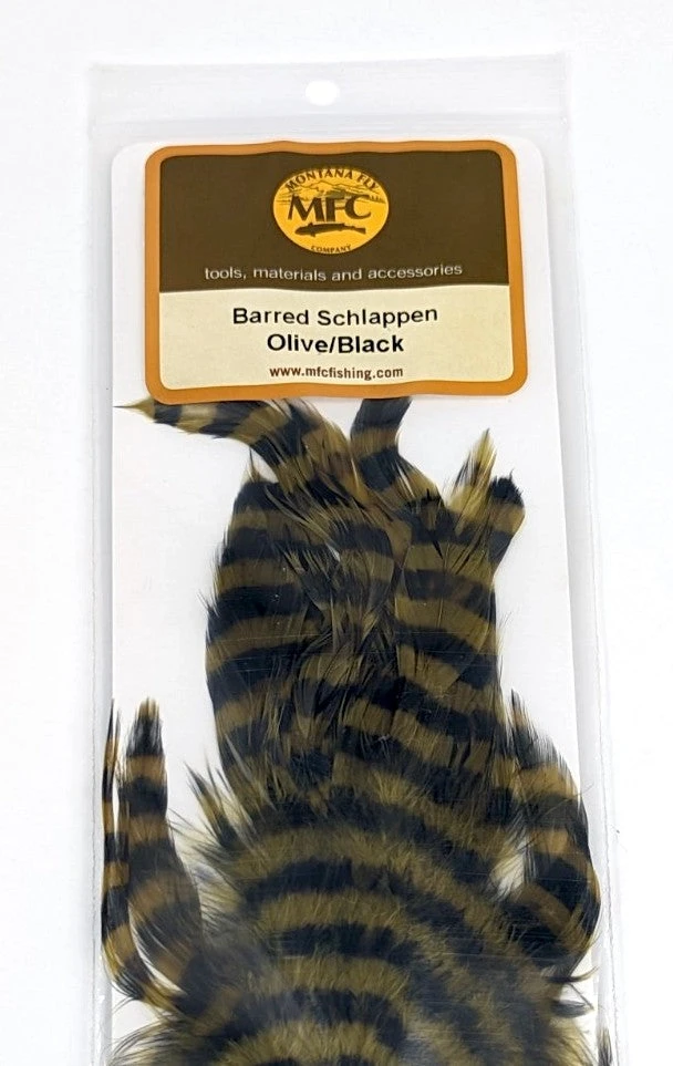 Montana Fly Company Barred Schlappen is great for tying trout streamers, as well as various steelhead, saltwater, and warmwater flies. Excellent barring, and great colors.
