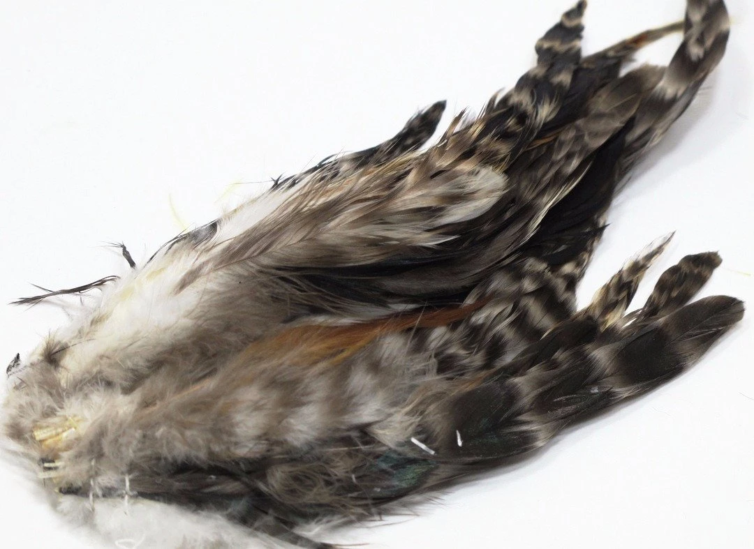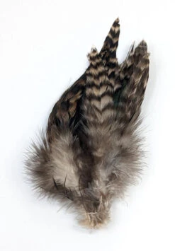 - Dyed over Grizzly Variant Boldly marked feathers. Lots of web and action. Great for big streamers, bass flies, and pike and musky flies.