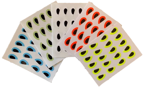 Pacchiarini’s Angry Predator Eyes have a unique look that adds that angry look to your pike and predator flies. These are flat adhesive eyes. Available in 3 sizes and 5 colors.