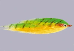 Rainy’s CF Baitfish Tandem – nice large profile baitfish pattern. Perfect for pike and muskies. Good choice for saltwater predators too. 7″ long
