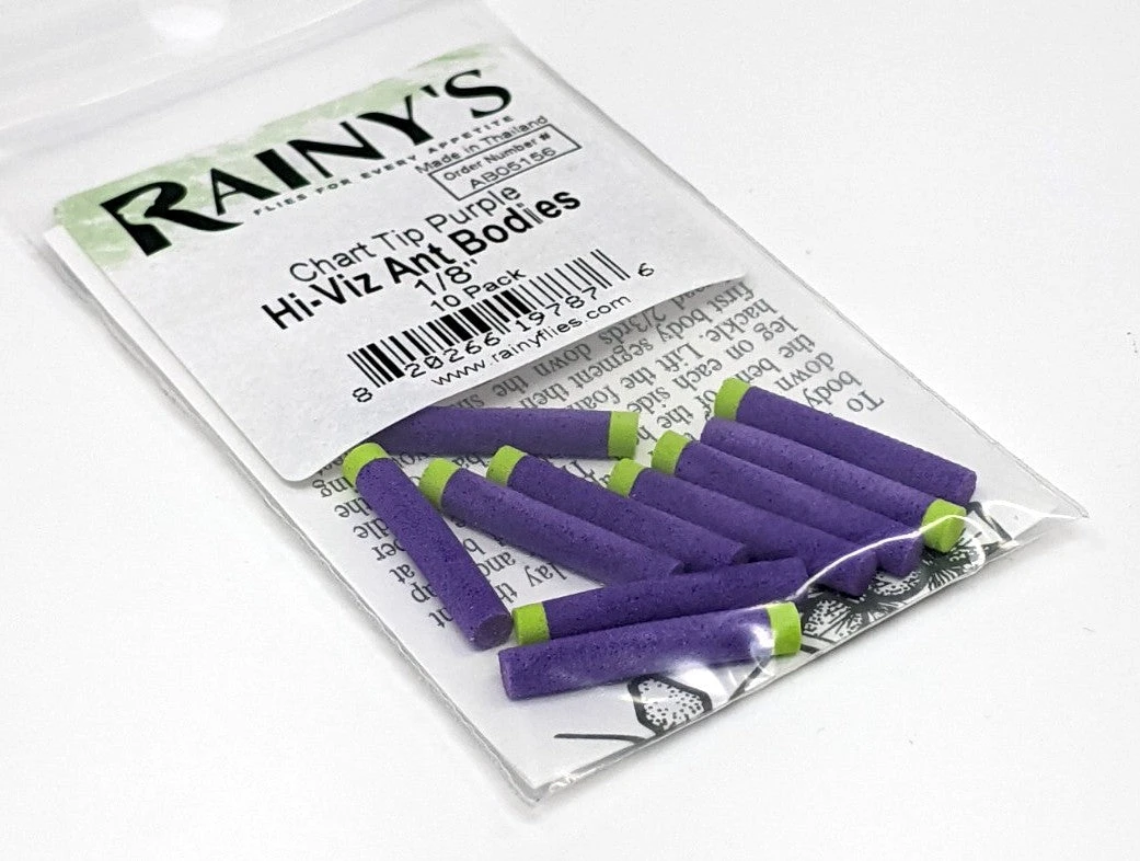 Rainy’s Hi-Viz Foam Ant Bodies – Foam ant bodies make perfect ants instantly. So easy to tie and so effective on the water. Also good for other hi-viz flies (i.e. caddis, etc.) Diagrammed instructions enclosed.