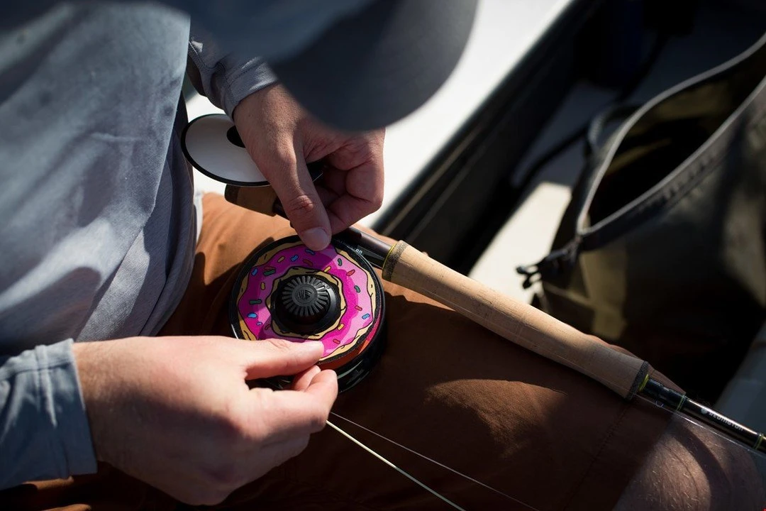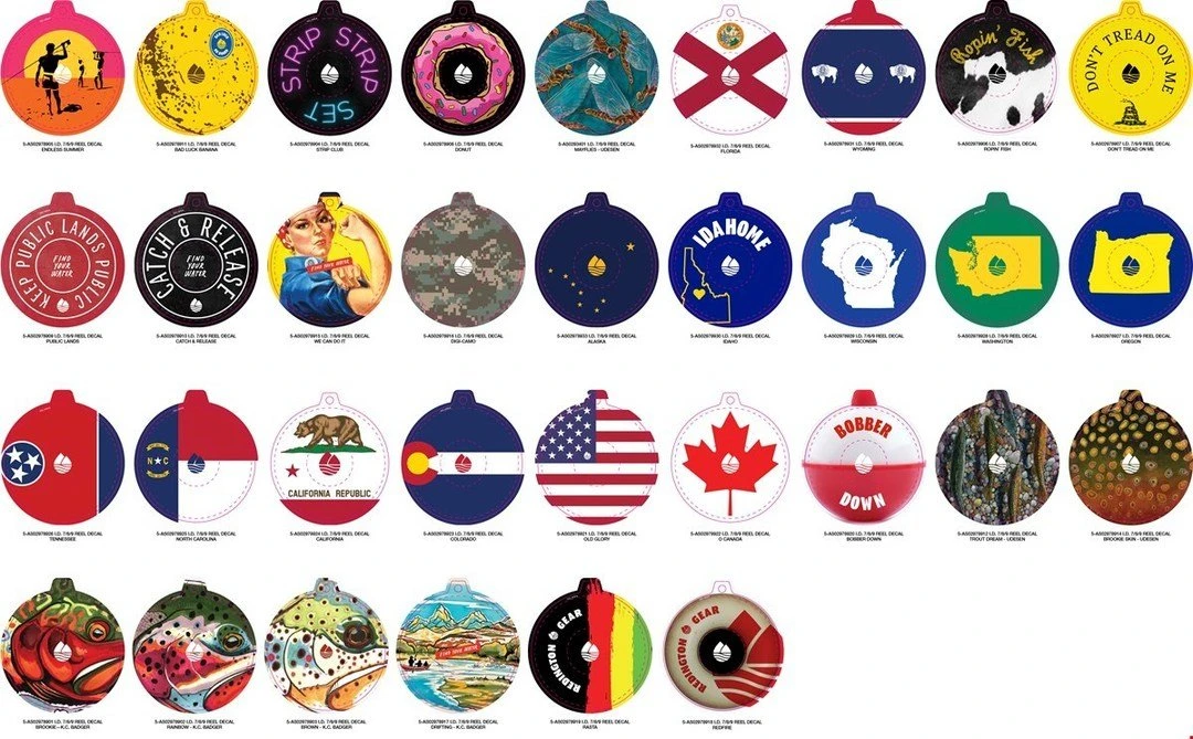 Redington i.D. Fly Reel- Featuring sturdy cast aluminum construction, the i.D. has a smooth rulon disc drag and large arbor for speedy line retrieval. The soft-touch, twin-molded, dual-density handle offers supreme grip and control. Define your identity as an angler with 34 decal options to put on the flat back surface of the new i.D. reel. Represent your home state, your favorite fish species, or even your favorite food – mmmmm, donuts – with these simple to adhere, stack, and remove decals.