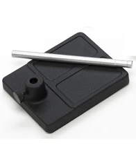 The Renzetti Pedestal Base for the Traveler Series and or the Tube Fly Vise is made out of cast zinc that is then powder coated black. It is approx. 4″ wide x 5″ long x 1/2″ thick and it weights almost 3 pounds. The Renzetti pedestal base comes with a 7″ black anodized aluminum stem and a non slip rubber protective pad to keep your vise in place as well as to protect your working surface.