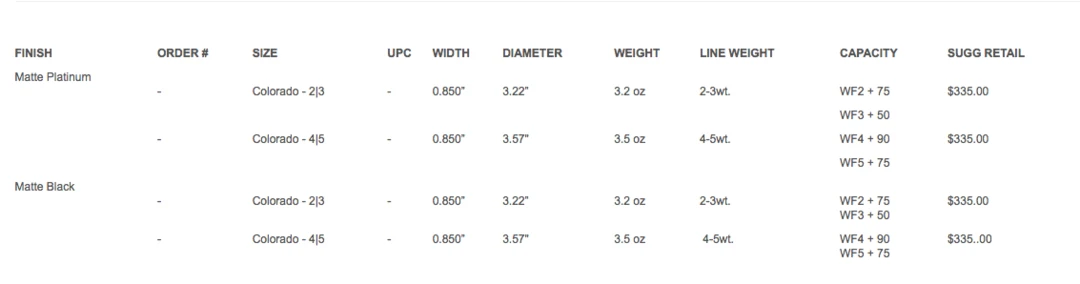 This thoroughly updated design brings a beautiful aesthetic defined by aerodynamic shapes and surfaces. The look of this reel is different from anything on the market today. A novel, all-metal external clicker accentuates the back of the reel, complete with a machined silhouette of our local San Juan Mountains and a classic click-pawl sound. The spool is even more open than its predecessor, making the face of the reel appear spacious and clean, with the beveled large arbor showing off the backing and line just as well as it picks it up. The semi-caged frame adds unmatched strength and rigidity, but with only a minimal weight gain – just enough to balance out a wider range of lightweight rods. The industry-first bushing is fully machined from Vesconite – a material specifically designed to be used in the toughest marine bearing applications, guaranteeing a lifetime of flawless operation. Classic sound and feel meets modern strength and design to make the Colorado a functional piece of art – both on and off the water. With every angle and material carefully analyzed and considered, the new Colorado is designed to be fished from small streams to big rivers and everything in between.