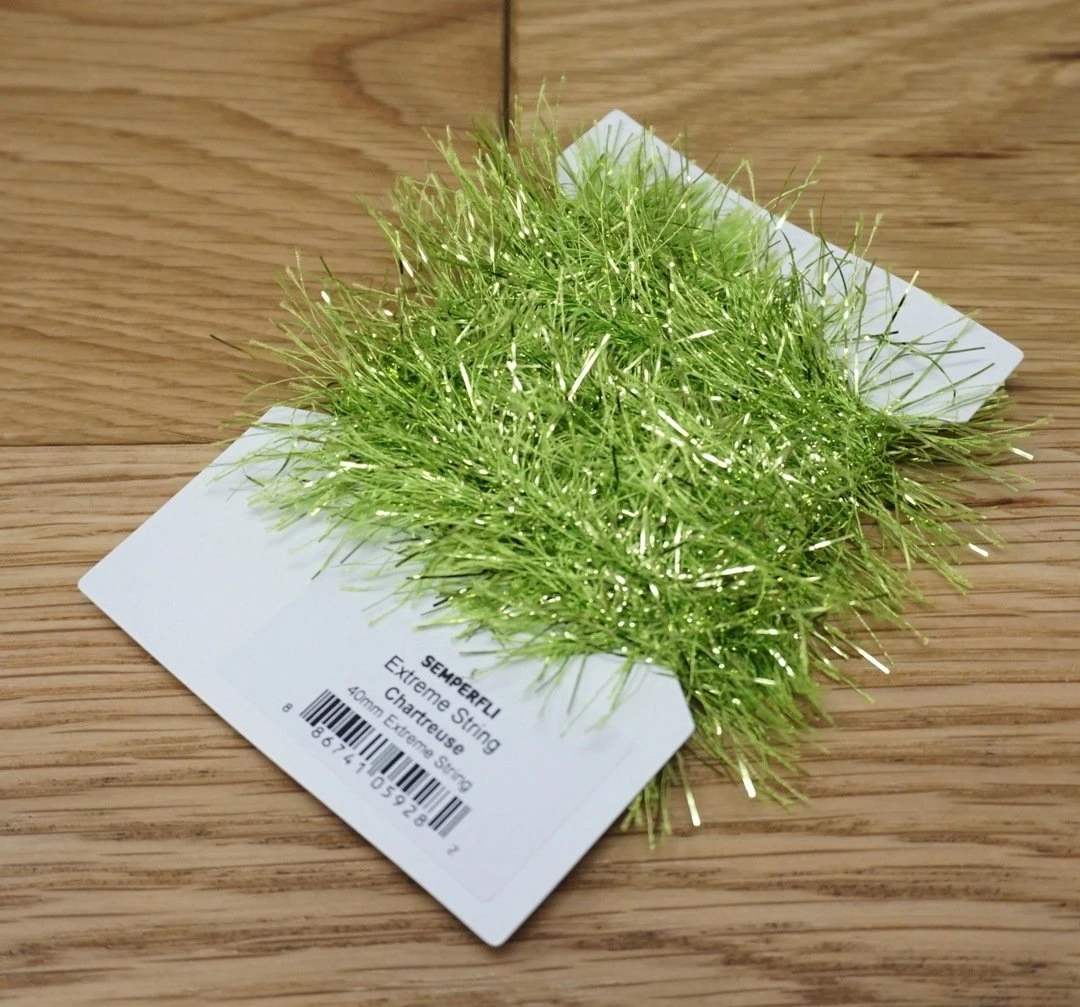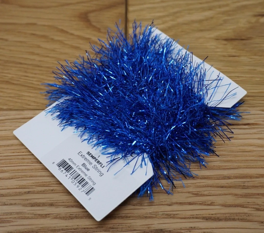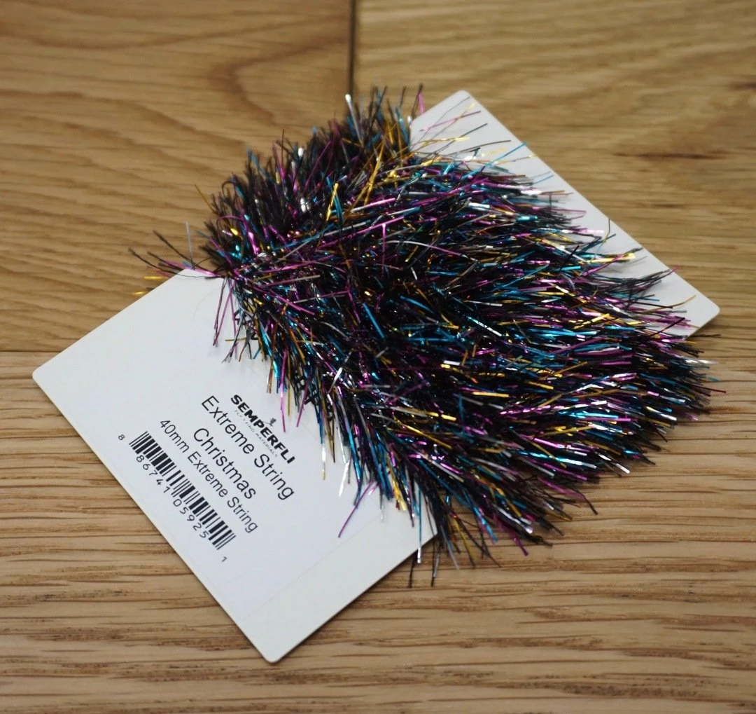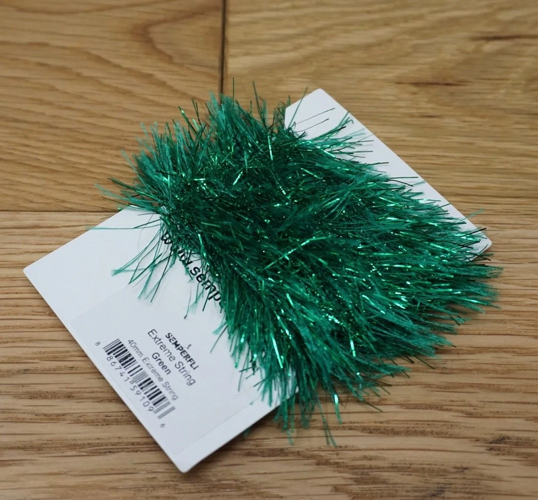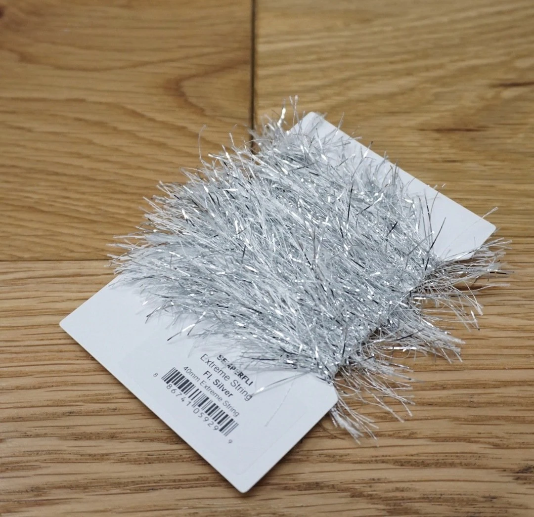Semperfli Extreme String 40mm – Synthetic hackles with added metallic flash. Simply wrap on the hook and brush out to create bodies and collars on streamers, steelhead flies, pike and musky patterns, and saltwater flies. Perfect for crafting flies to lure in hungry predators!