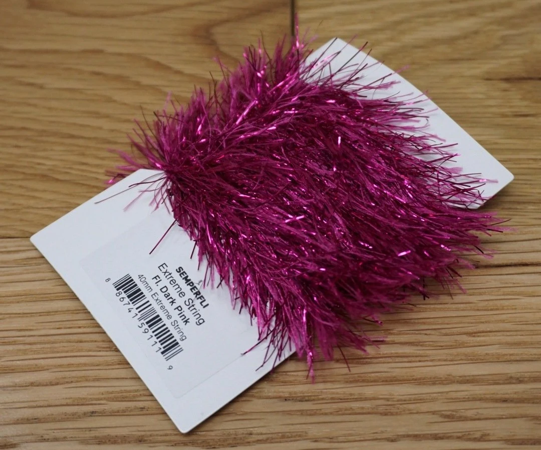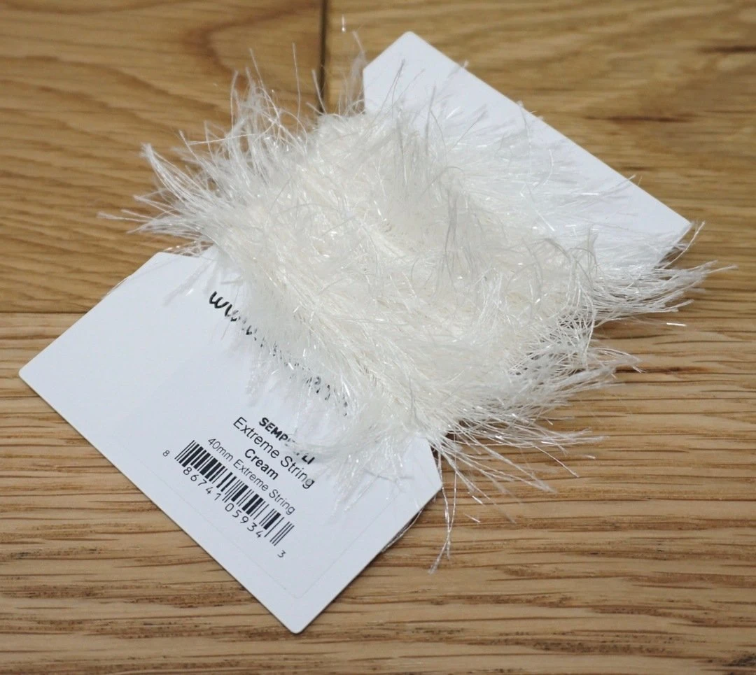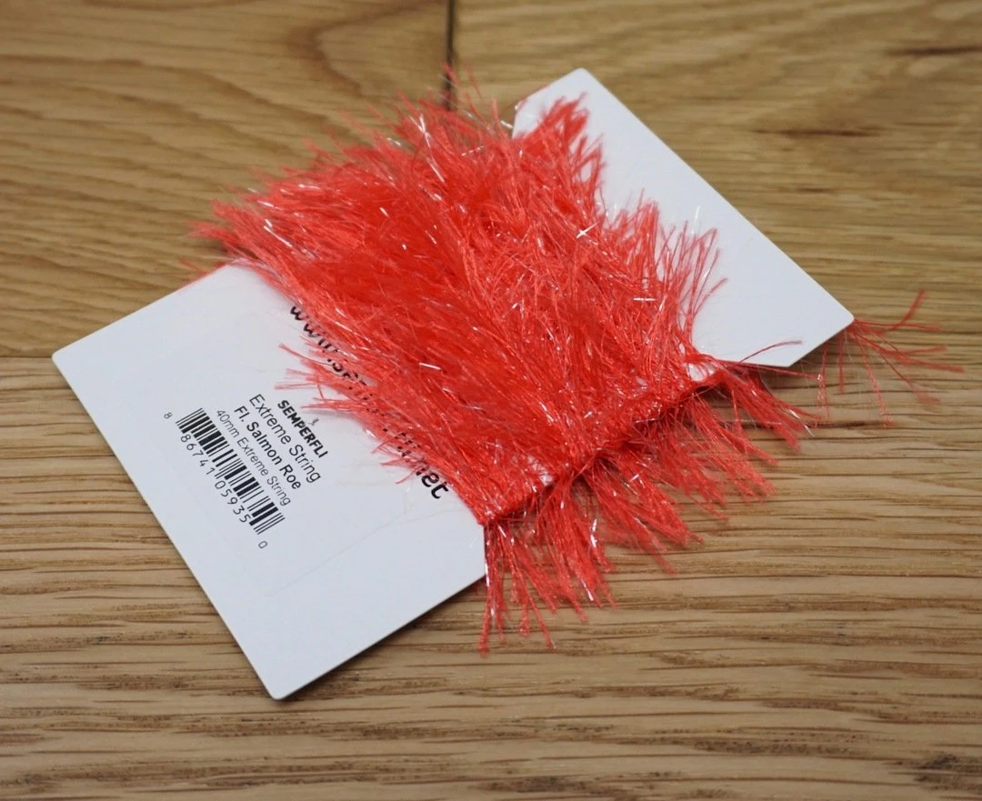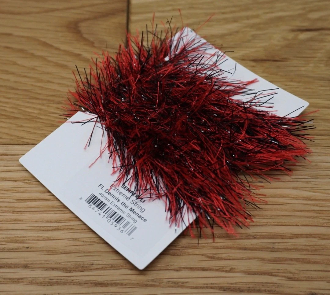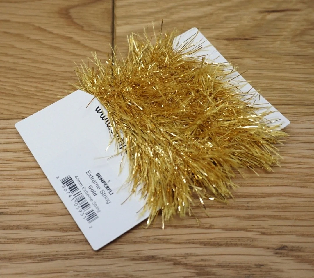 Semperfli Extreme String 40mm – Synthetic hackles with added metallic flash. Simply wrap on the hook and brush out to create bodies and collars on streamers, steelhead flies, pike and musky patterns, and saltwater flies. Perfect for crafting flies to lure in hungry predators!