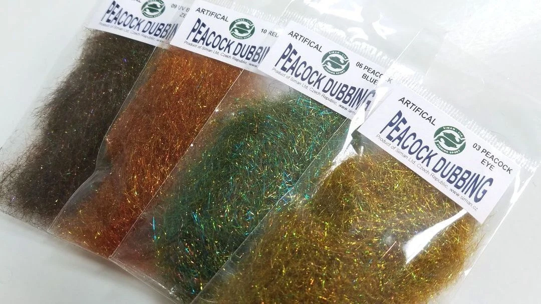 Jan Siman Peacock Dubbing Fine is one of the most realistic peacock replacement dubbings. This is the most popular dubbing from Siman. Comprised of flash and non flash fibers making an amazing blend for the flies you love.