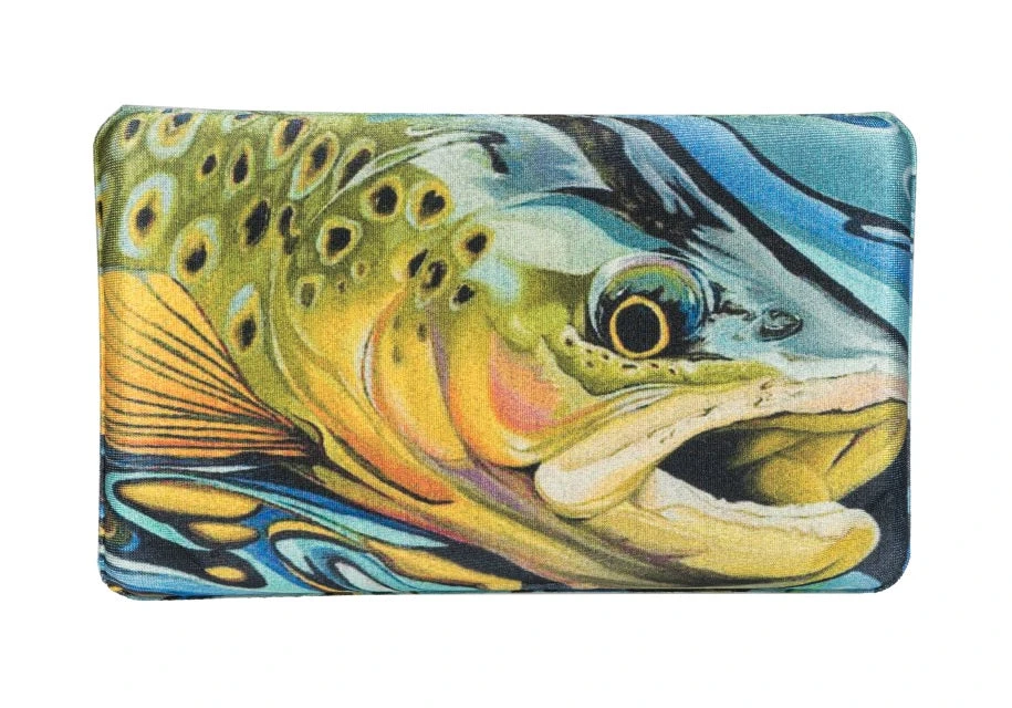 Lightweight floating fly box made from EVA foam covered with Trout pattern lycra. Features teardrop foam and magnetic closure. 6 1/4 x 3 3/4 x 3/4″ SLIM