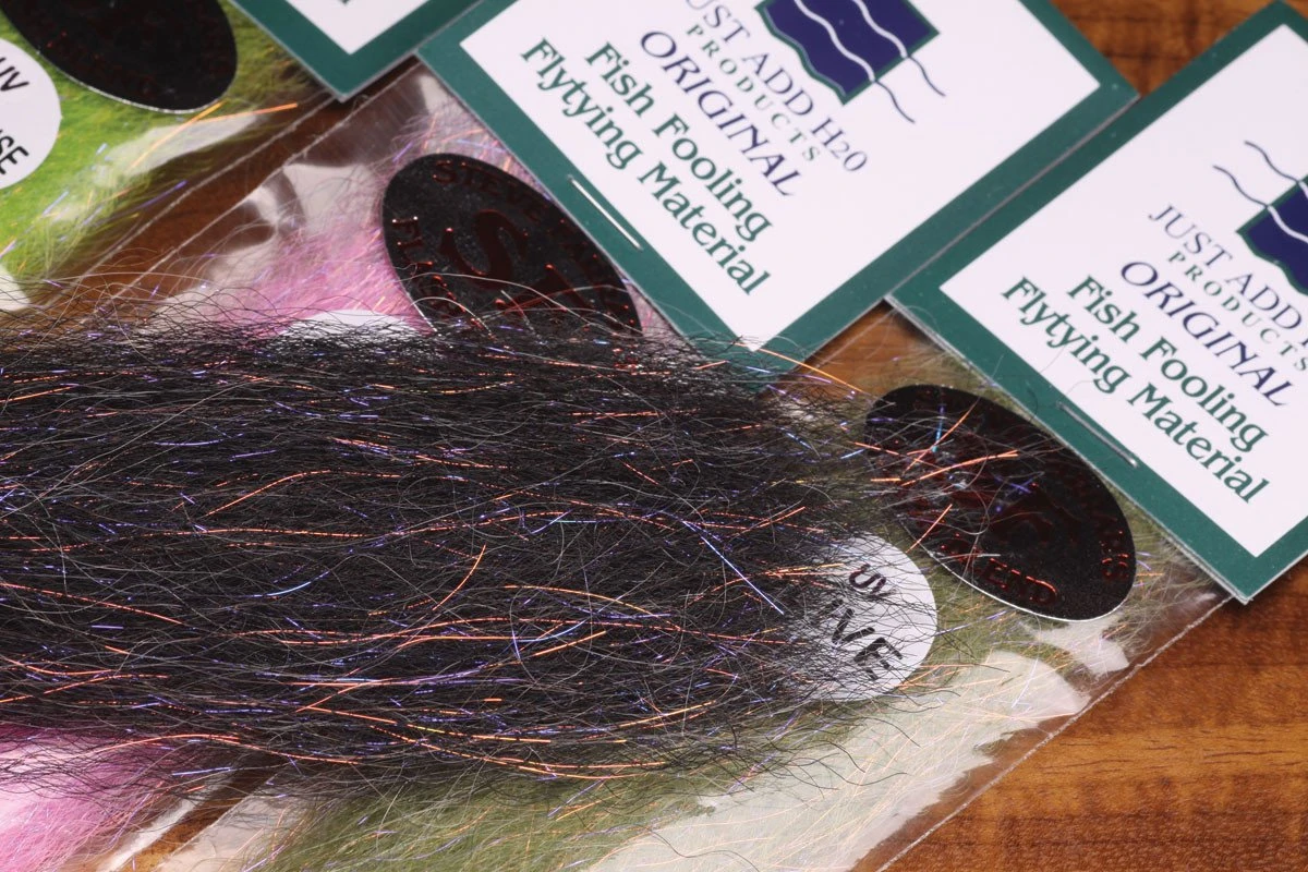 Steve Farrar SF UV Blend – This is great stuff. Slinky Fiber blended with fine UV flash material. Excellent winging material for streamers. Perfect for saltwater, pike, musky, bass, stripers, and big trout flies.