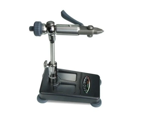 High precision vise for a fast hook changing. To use simply squeeze the lever and insert the hook into the jaw. When you release the lever the hook will be held firmly in the vise. The hardened steel jaw is designed to hold hooks ranging from tiny size 28 to mighty 5/0 saltwater hooks with no adjustments. Other features: lever with anatomic handle, 360° rotary action with dual precision ball bearings, double diameter handwheel, adjustable rotary tension, locking position to 0°, adjustable tying angle, adjustable height. The lever can be set up for both left and right handed use. Supplied with pedestal base, spring material clip, allen keys and instruction manual.