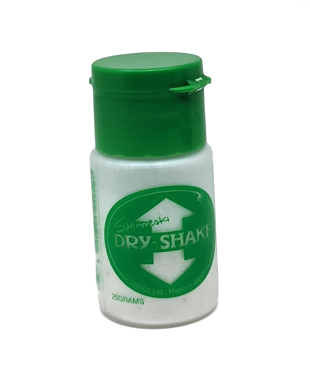 DRY SHAKE ORIGINAL : Great for drying and reconditioning flies. When your dry fly begins to sink, just put it in the dry shake container and shake it. The absorbing powder in the bottle removes the moisture from the fly and coats it with a water resistant material. Your fly will again float like new.