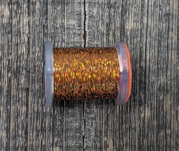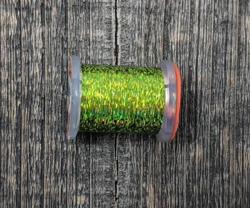 Holographic mylar tinsel. Very flashy. Great for lightning bugs and disco midges. Also used to rib nymph patterns.